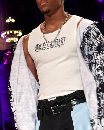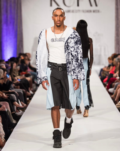 B&W Graffiti Denim Trench Coat